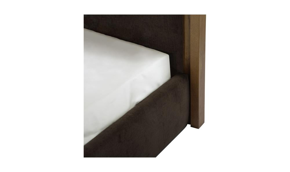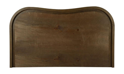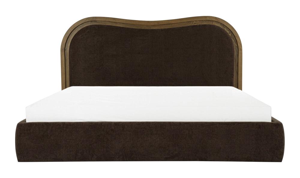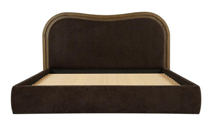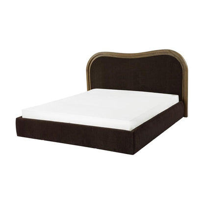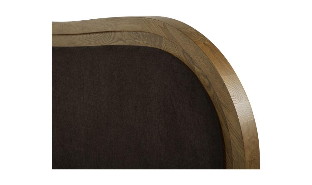 Art Deco Style Curved Headboard Brown Upholstered King Bed Solid Ash Wood Frame