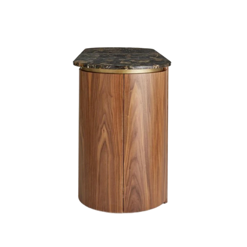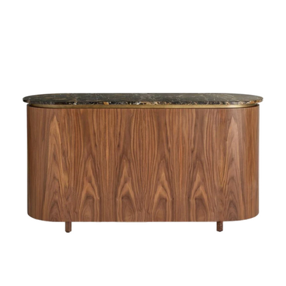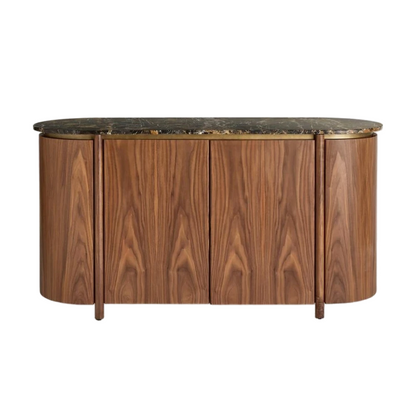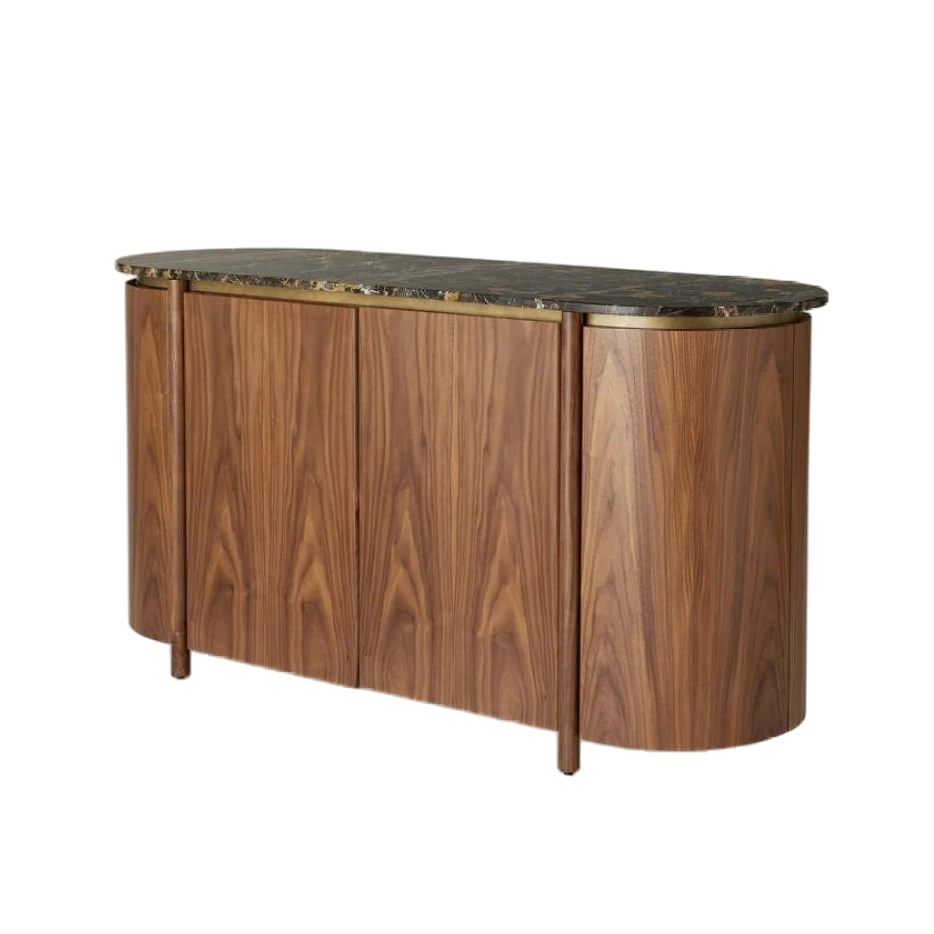 Black & Gold Marble Top & Walnut Wood Sideboard Buffet Cabinet 63 inch