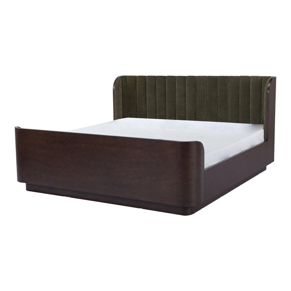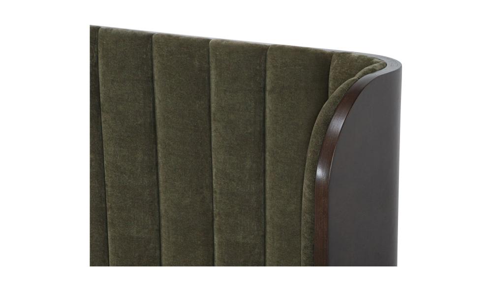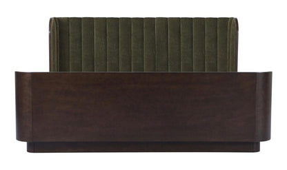 Channel Tufted Green Fabric Upholstered Curved Wingback Sleigh Queen Bed Frame Birch Wood