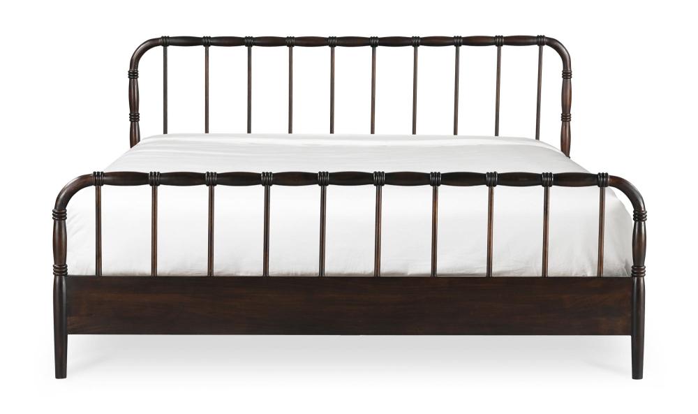 Dark Brown Solid Acacia Wood Open Frame King Spindle Bed