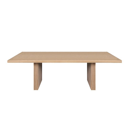 Double Pedestal Slatted Ribbed Base Rectangle Dining Table Natural Oak Wood 86 inch