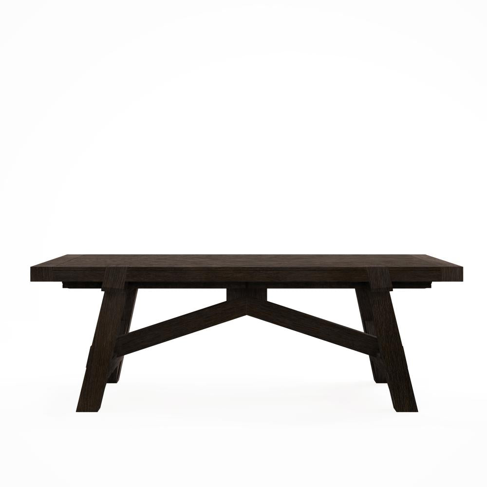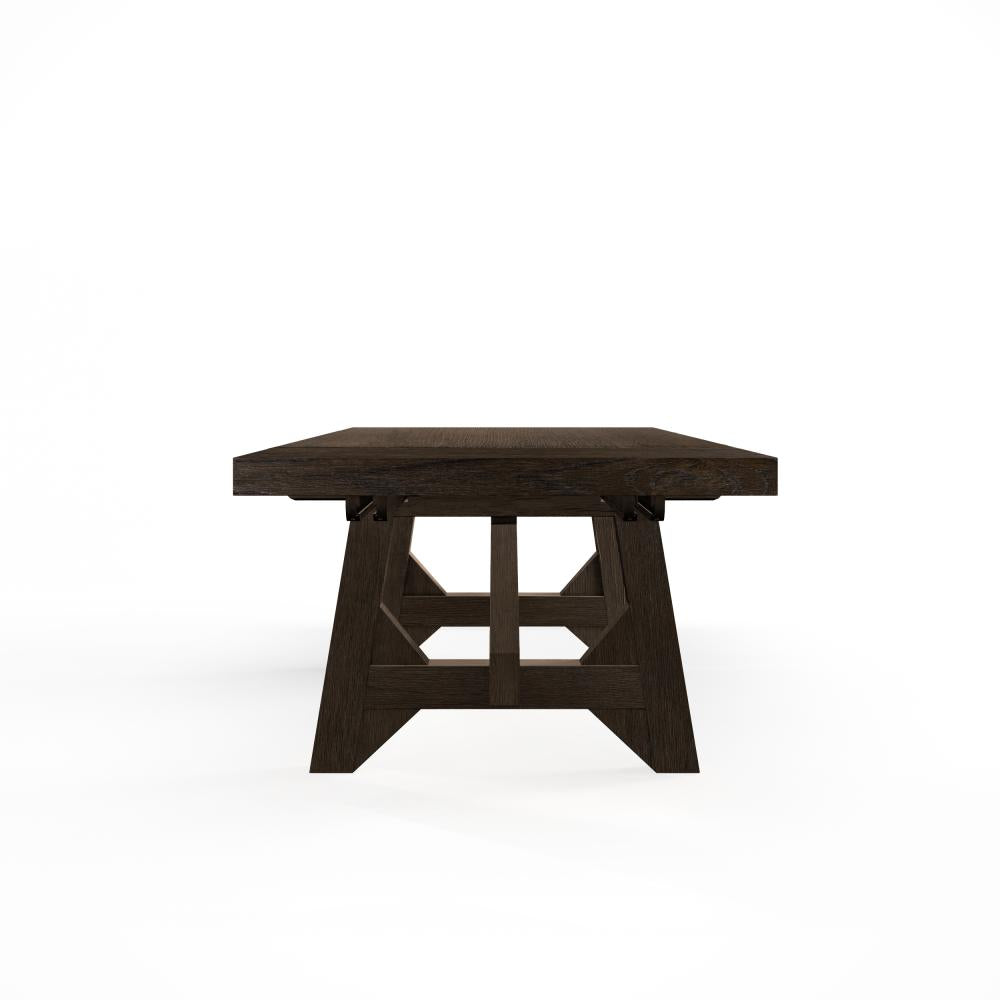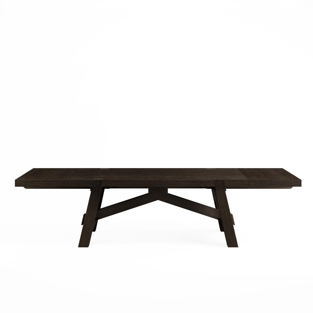 This Italian Country style extension dining table represents a modern take on 19th Century Northern Italian farmhouse style. Indudes two 18" breadboard leaves that drop in seamlessly at either end. Made from Oak solids, Rubberwood, manufactured wood, and Oak veneer.