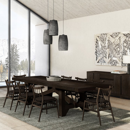 Farmhouse Rectangle Extension Dining Table Brown Finish 86 to 122 inch
