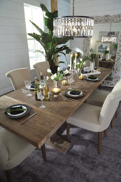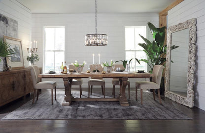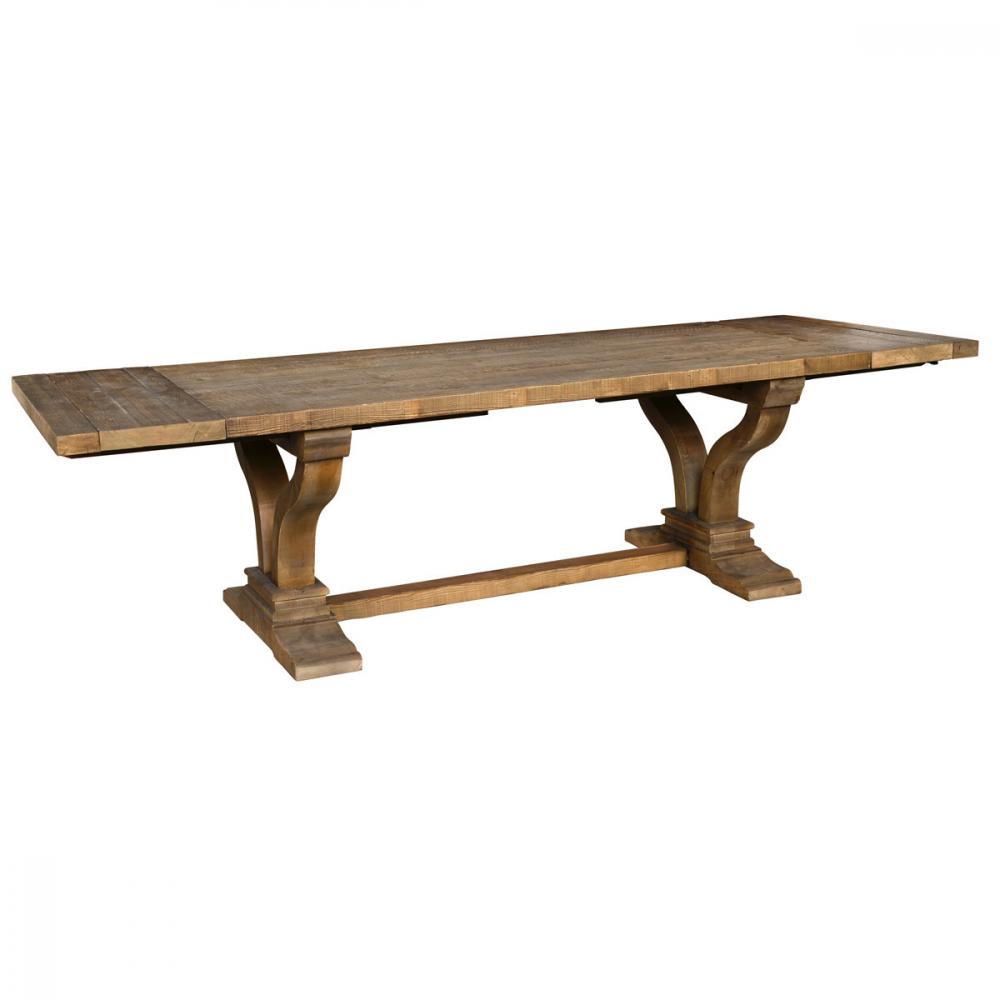 Farmhouse Solid Reclaimed Pine Wood Trestle Rectangle Extension Dining Table 86 to 110 inch