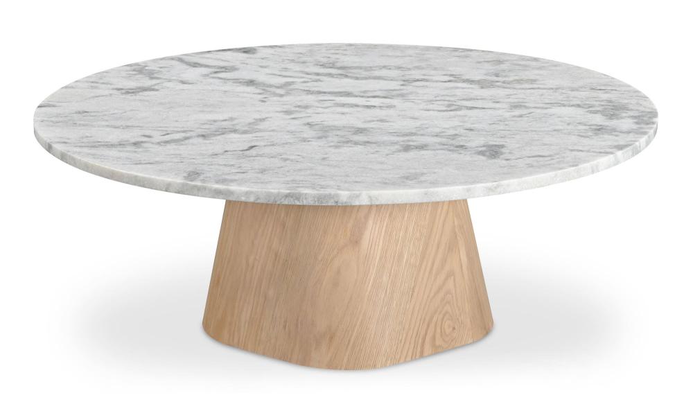 Gray & White Marble Top Light Oak Pedestal Round Coffee Table 42 inch