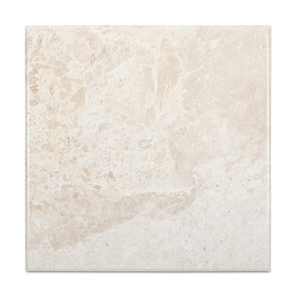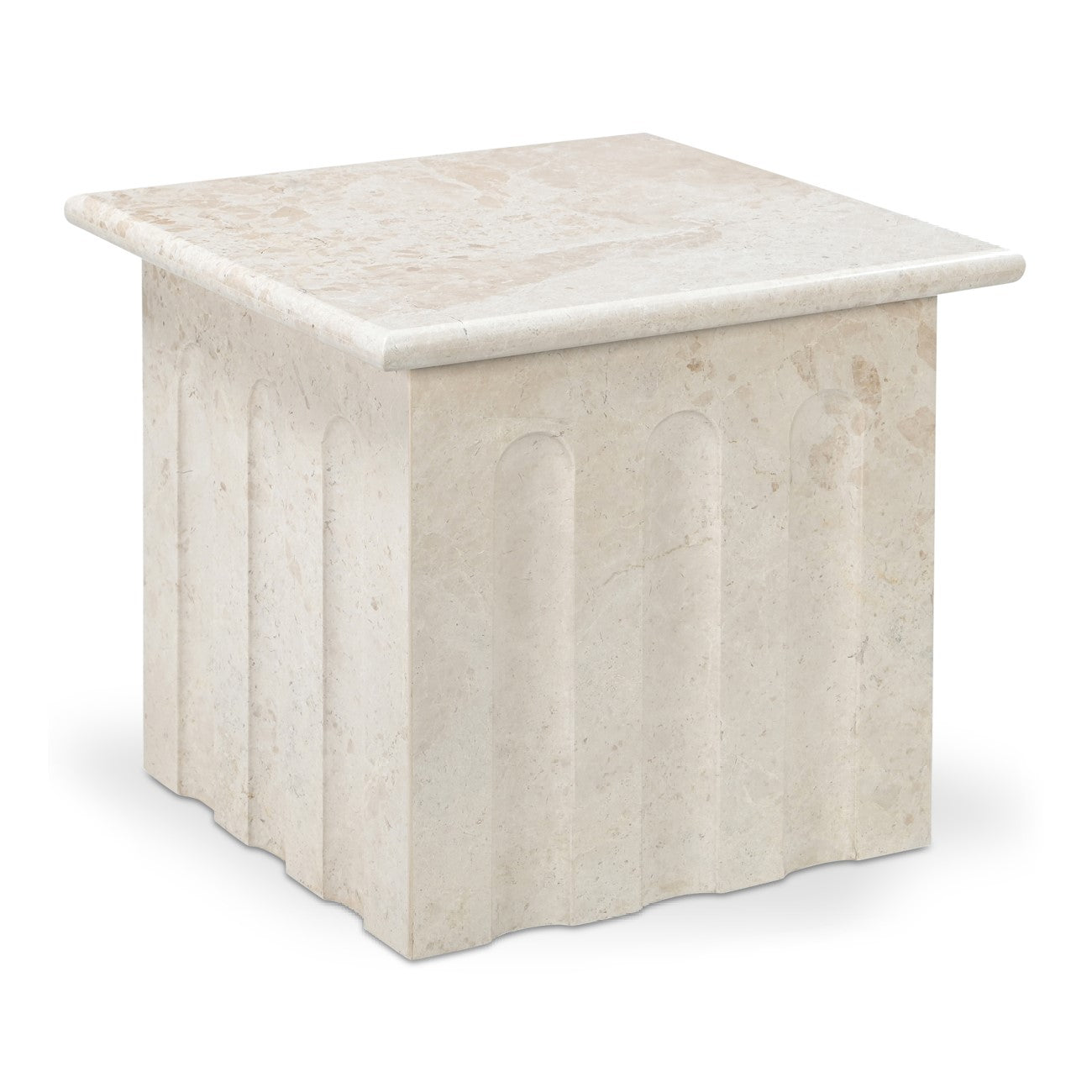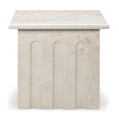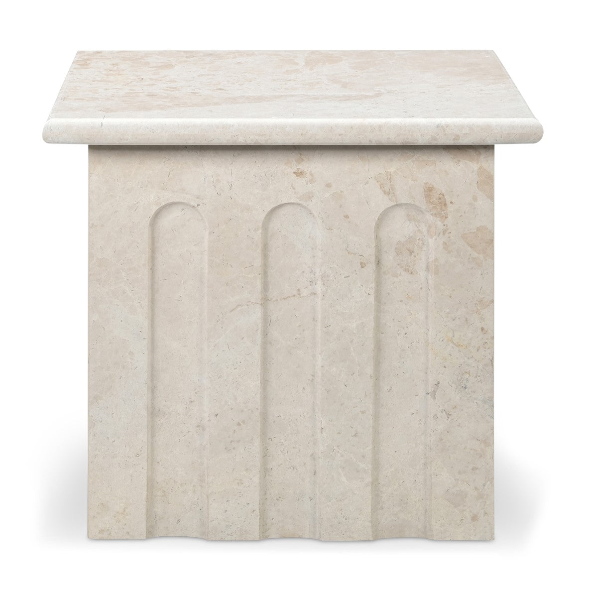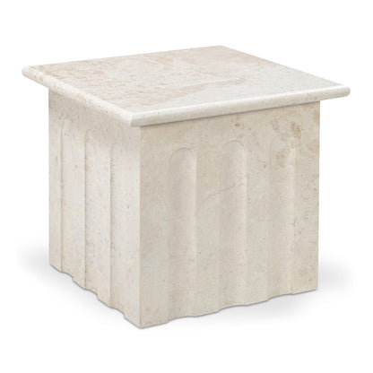 Italian Cosmos Cream Marble Carved Arches Square Block End Table 22 inch