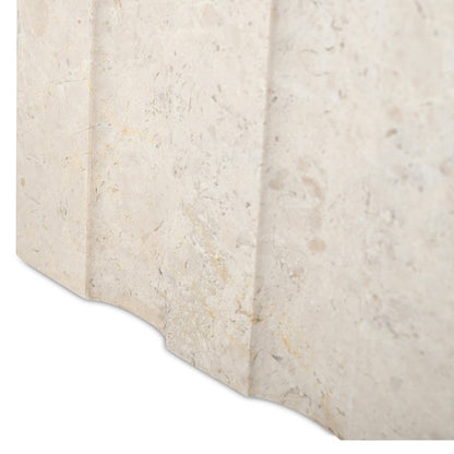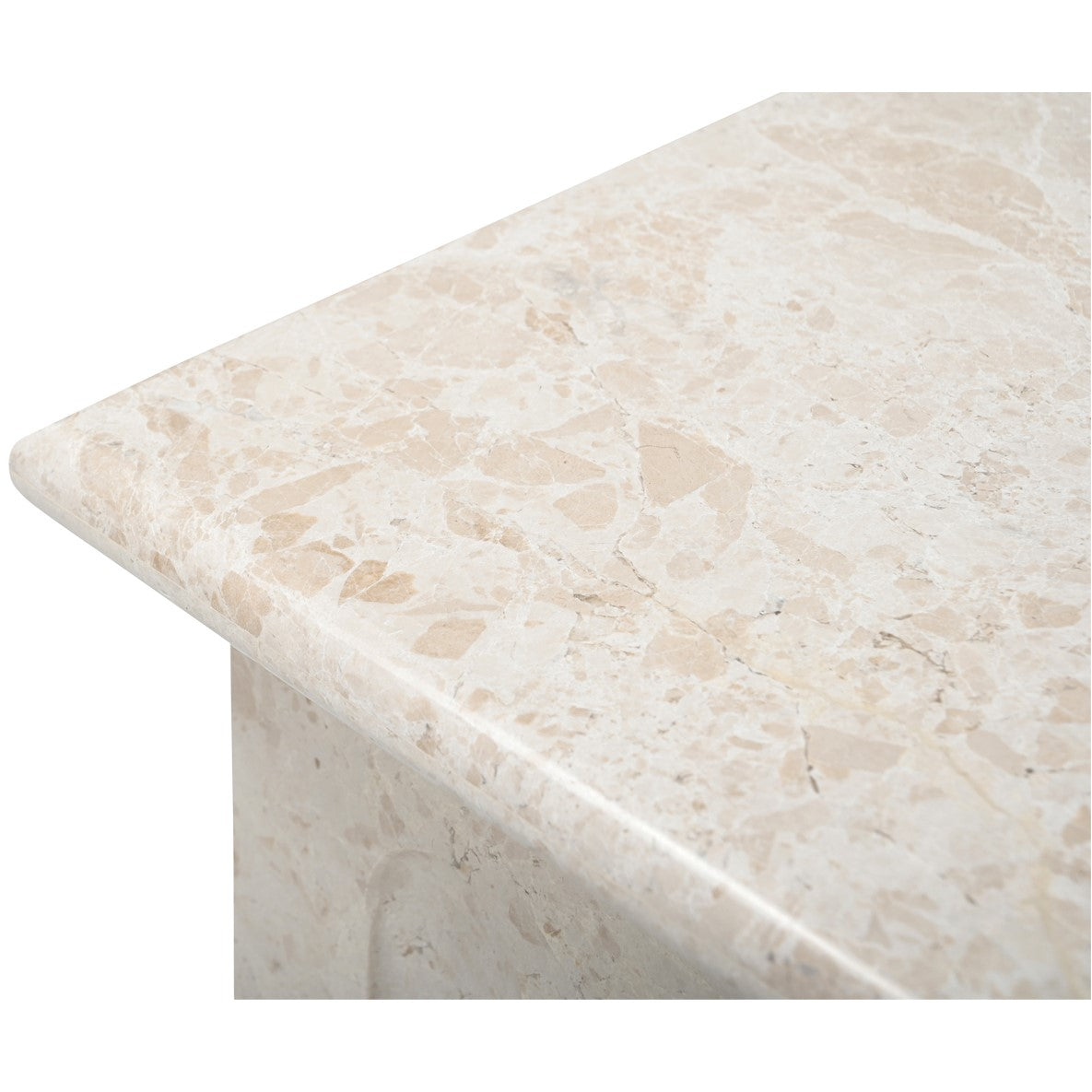 This side table is where ancient grandeur meets modern simplicity. Inspired by the profound architectural beauty encountered in Rome, this table pays homage to the iconic columns that line the ancient city, reimagined into a sleek, rectilinear form. Crafted from marble over plywood, it captures the essence of Roman majesty while seamlessly fitting into contemporary spaces, a testament to timeless design with a modern twist. Constructed of Italian Cosmos marble with carved arches on each side of base. Matte finish. Please note that due to the natural variances in marble, each table will vary in tone & vein markings. Country of Origin: India.