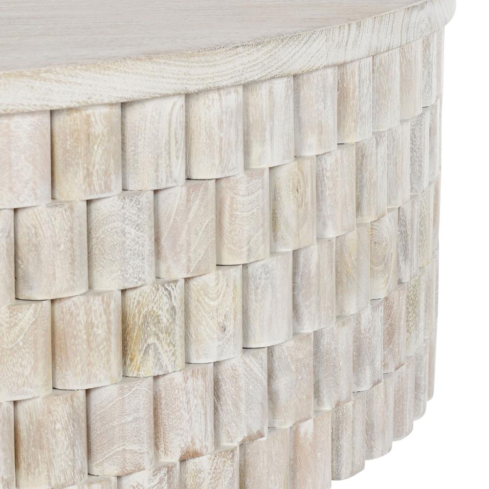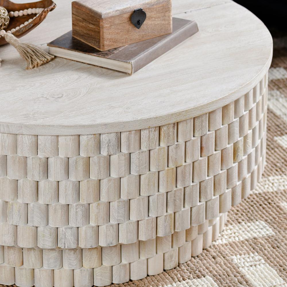Mango Wood Round Storage Coffee Table Coastal White Wash Finish 40 inch