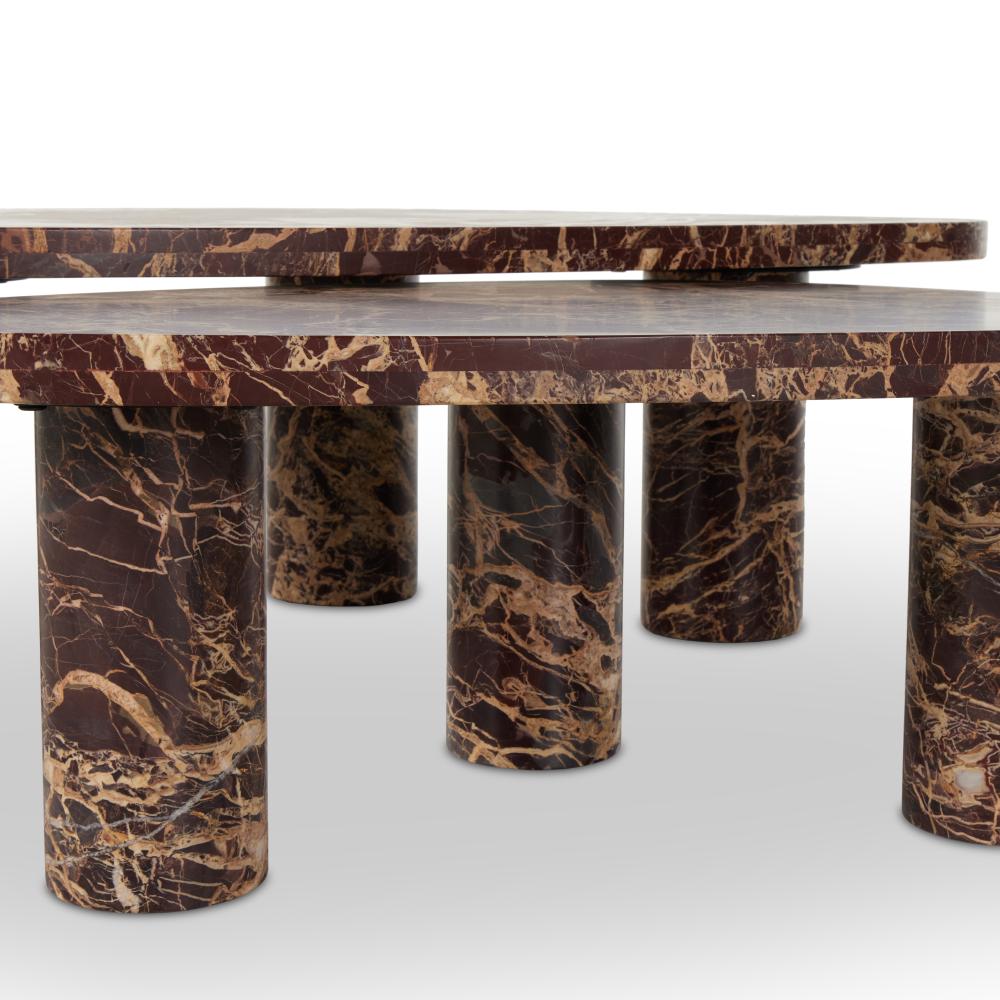 Merlot Solid Marble Freeform Pillar Leg Low Profile Nesting Coffee Table (Set of 2)