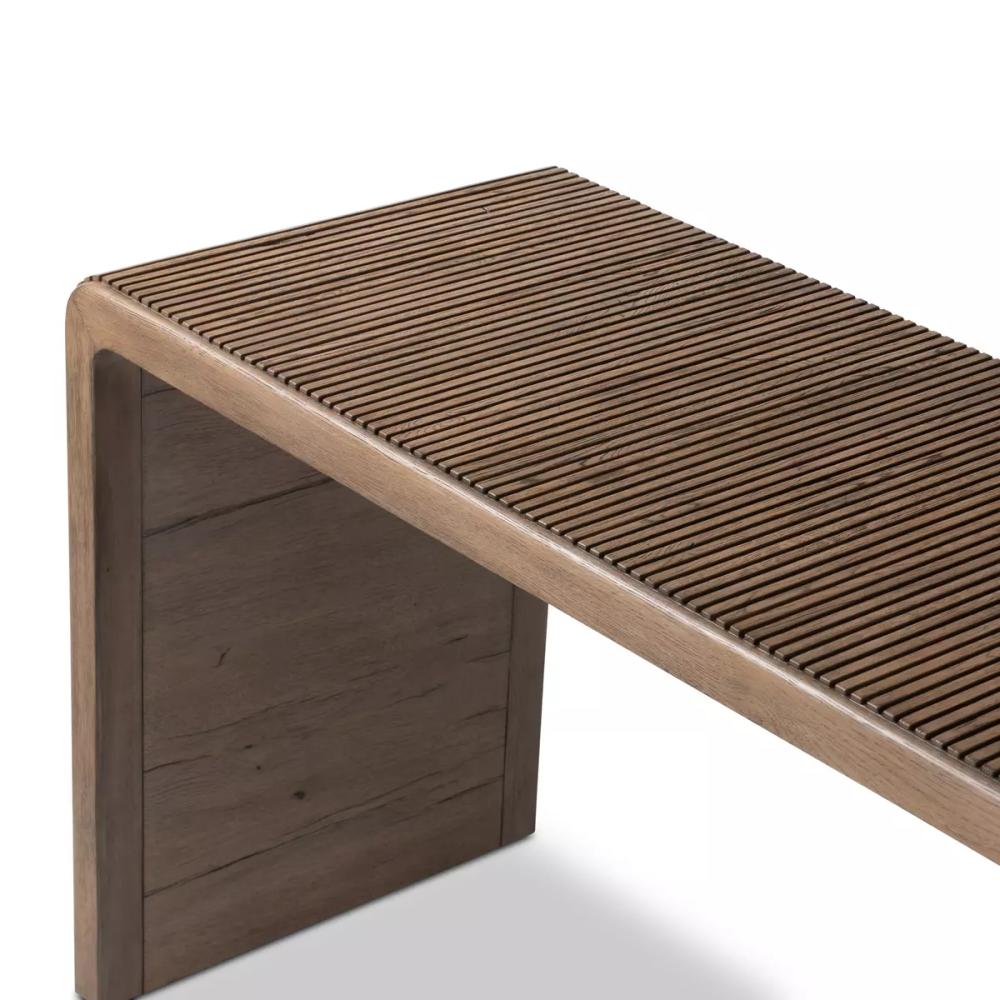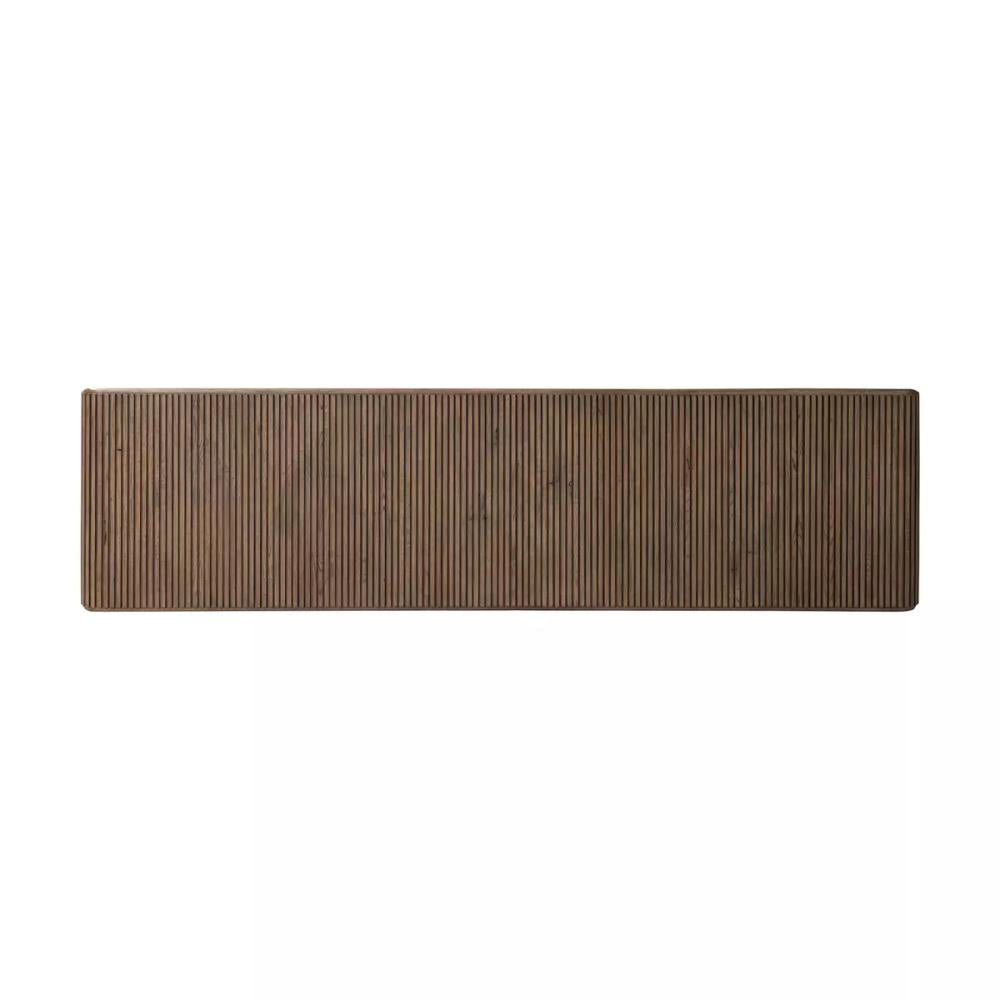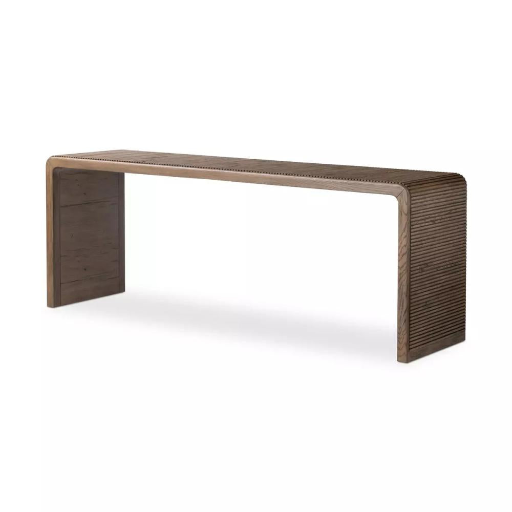 Minimalist Reeded Console Table Oak Wood with Rustic Grey Finish 80 inch
