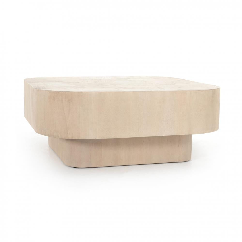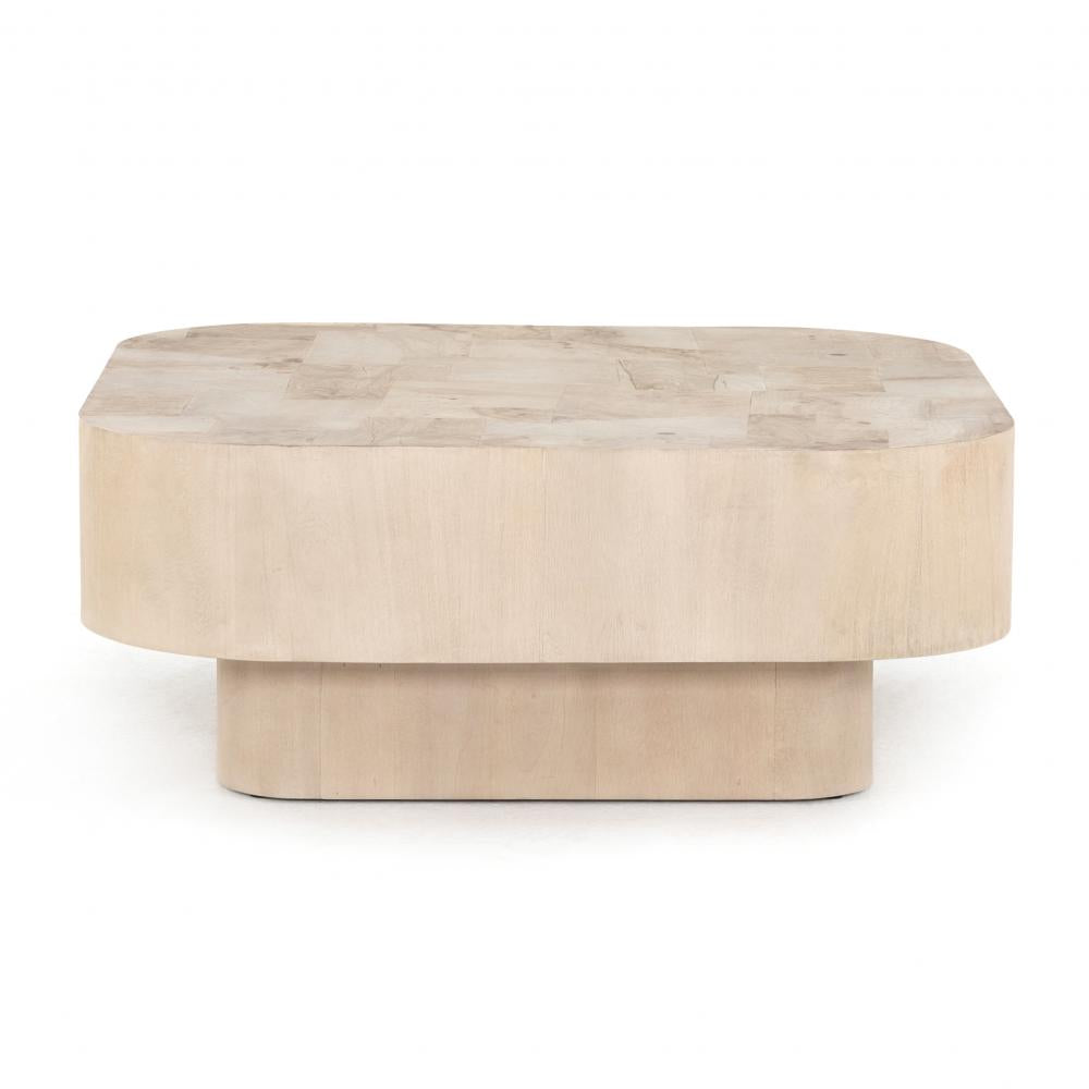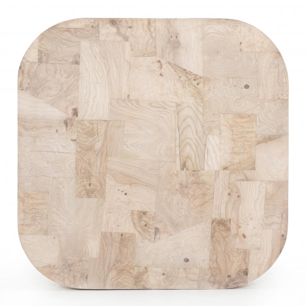 Rounded Corners Square Coffee Table Bleached Burl Wood 40 inch