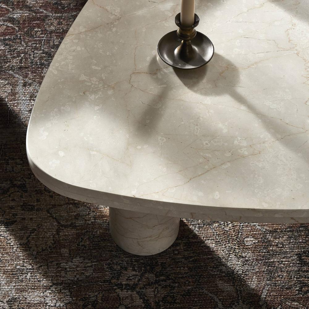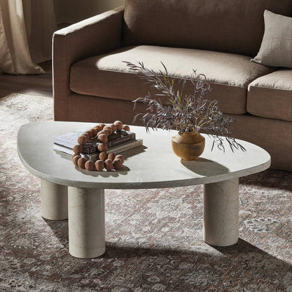 Solid Cream Marble Freeform Pillar Leg Low Profile Coffee Table 48 inch