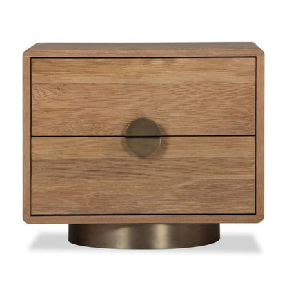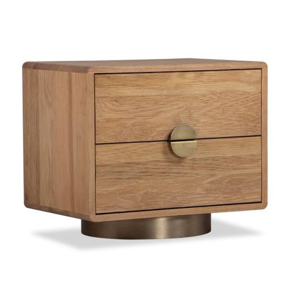 Solid FSC Certified Oak Wood Rounded Brass Plinth Base Nightstand 26 inch