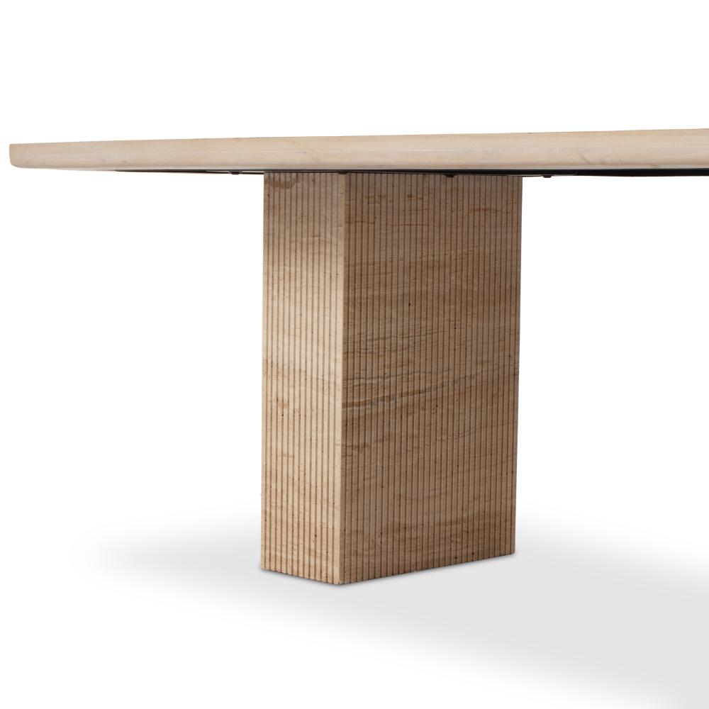 Solid Marble Reeded Double Pedestal Base Rectangle Dining Table White Oak Wood 84 inch