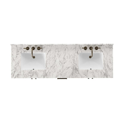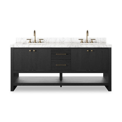 White Carrara Marble Top Black Oak Wood Double Sink Bathroom Vanity 72 inch